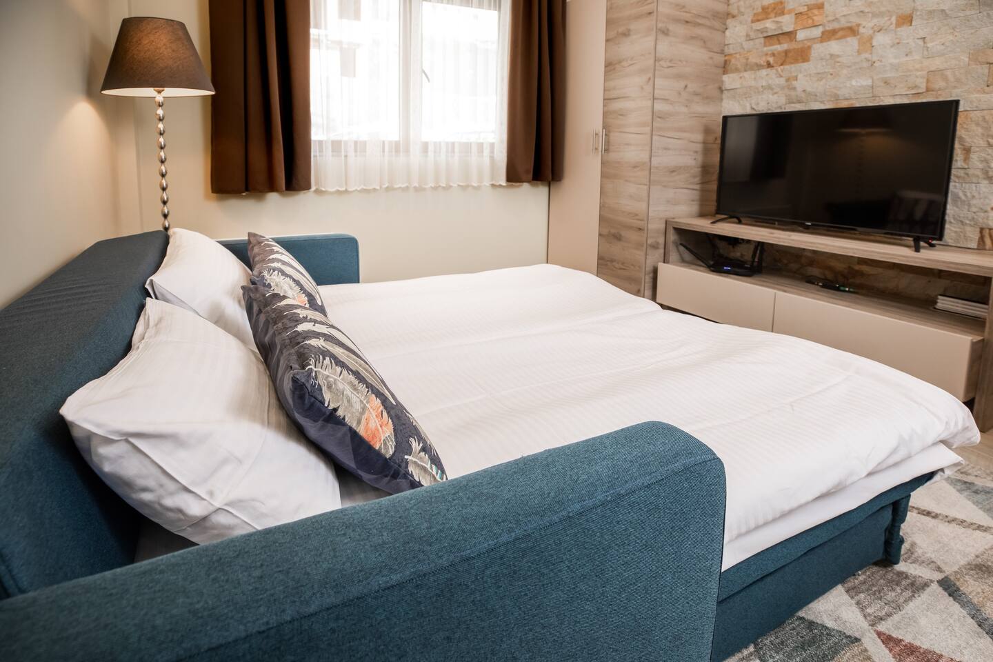 Predivno opremljeni, s ugodnom planinskom atmosferom, odvojenom spavaćom sobom sa Smart TV-om i terasom, imaju sve što vam je potrebno za opuštajući odmor. Imamo potpuno opremljenu kuhinju sa pločom za kuvanje i rernom, tosterom i kuvalom, ako želite da sami pripremate obroke. Imaćete besplatan high speed Wi-Fi internet, LG Smart TV, besplatan parking.